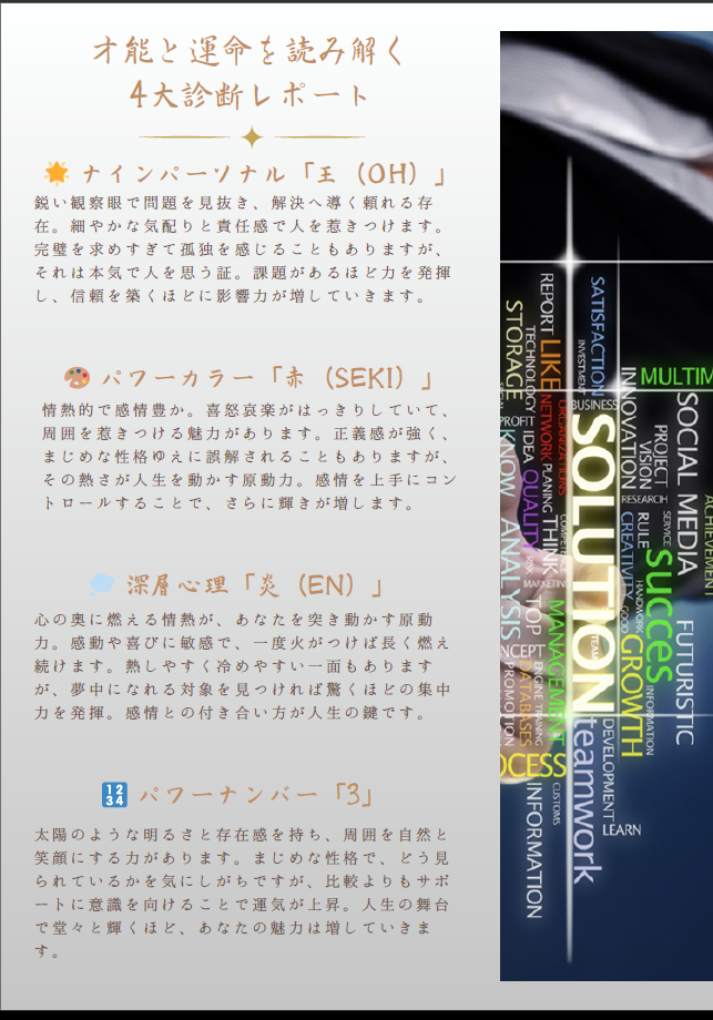才能と運命を読み解く 4大診断レポート(サンプル)